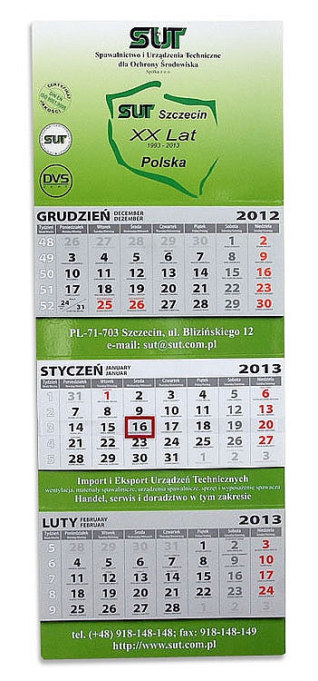 Stor och extra stor trippelkalender 350x855 - 880 mm - En kompromisslös lösning som erbjuder den största reklamyta, framstående i storlek jämfört med andra kalendrar. Vikta kalendern får plats i ett E4-kuvert (280x400 mm). Populär bland kunder som gillar exceptionella lösningar.