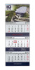 Standard trippelkalender 315x830 mm - denna kalender är designad för att erbjuda en stor reklamyta till en förmånlig produktionskostnad. Efter att ha vikts får kalendern plats i ett B4-kuvert (250x353). Den har 2 fält om 50x315 och ett om 80x315 med kalenderblock för reklam. Individuellt tryckt huvud med måtten 225x315 mm, som kan vara en helhet med ryggen eller upphöjd fastklistrad.