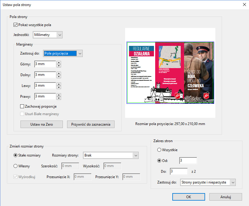 Vid design bör alla viktiga projektkomponenter som text, teckningar osv. vara på ett lämpligt avstånd från sidans kant. För detta ändamål är det värt att definiera en säker marginal i applikationen.