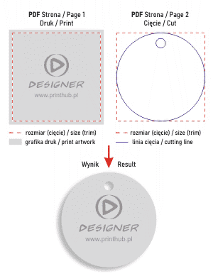- På den första sidan av PDF-dokumentet - placera grafiken avsedd för tryck, utan några markeringar, med bibehållen utfall
